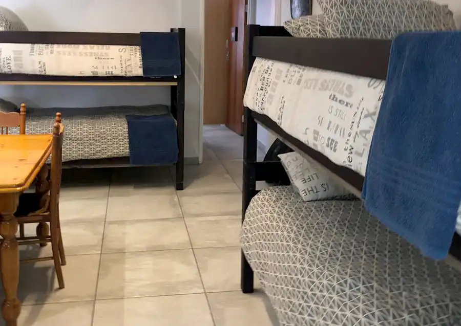 Each unit has a private entrance and the kitchenettes are fully equipped with the utilities needed. Each unit has a private bedroom with a queen bed and bunker beds in the living areas.